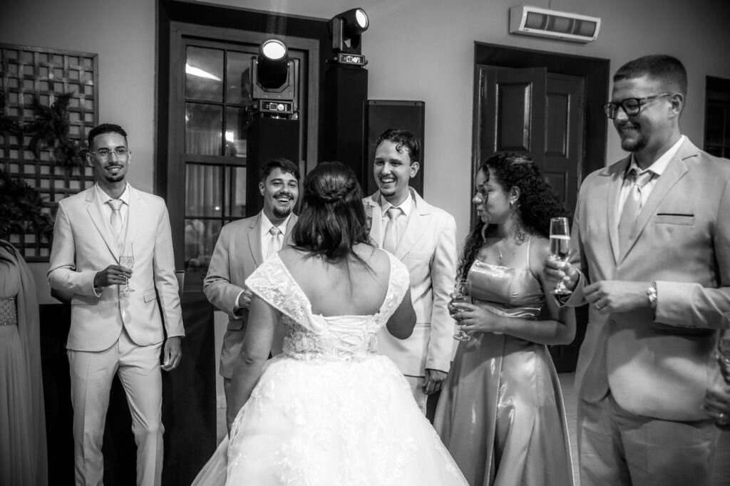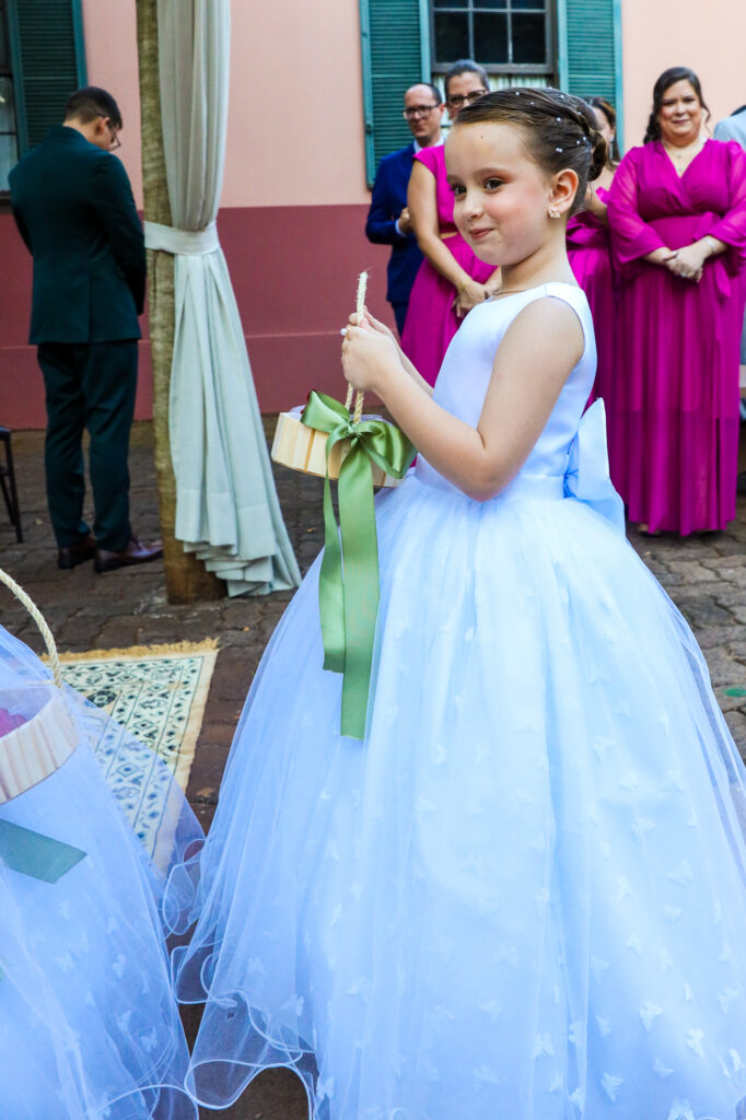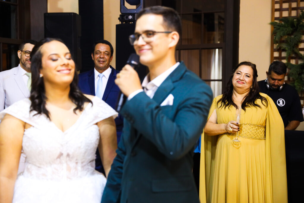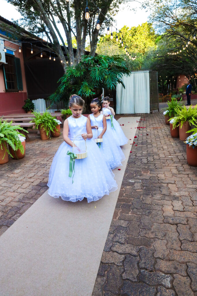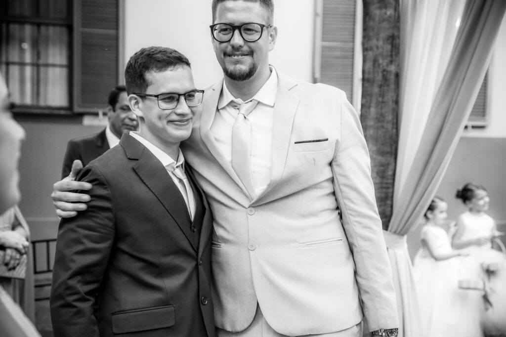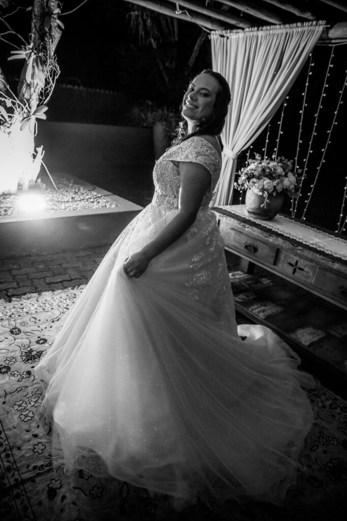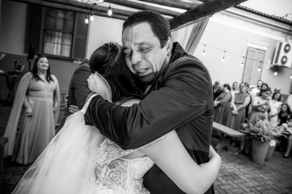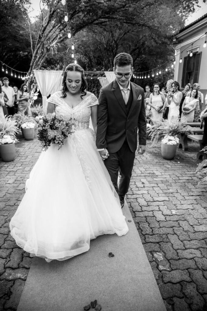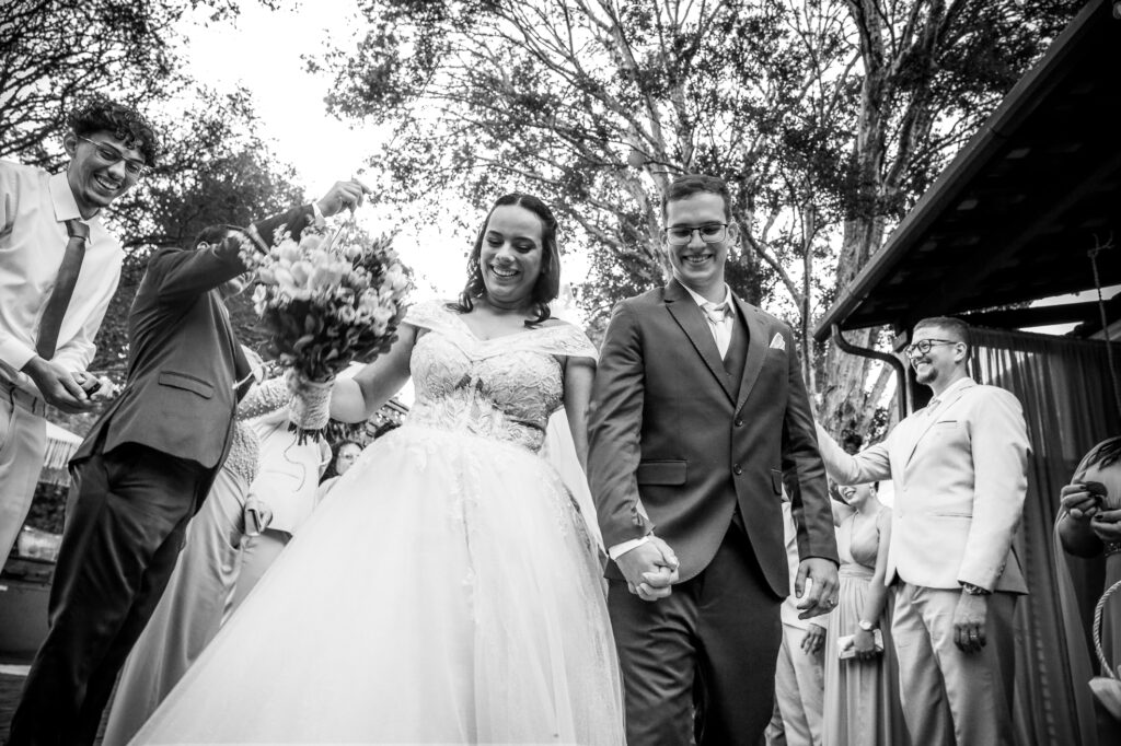 A Ana estava nervosa no começo, até chorou antes de entrar na cerimônia, mas assim que viu o Eduardo, tudo se encaixou e ela sorriu.