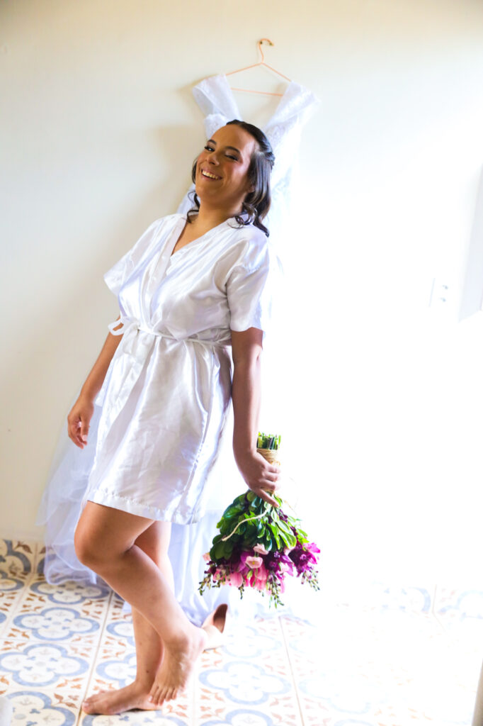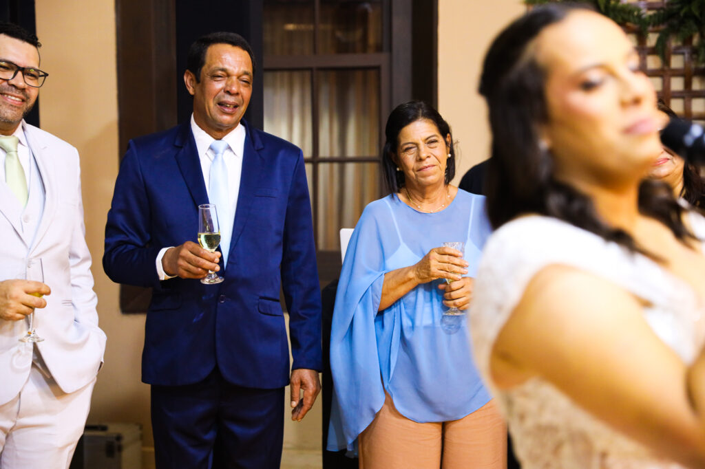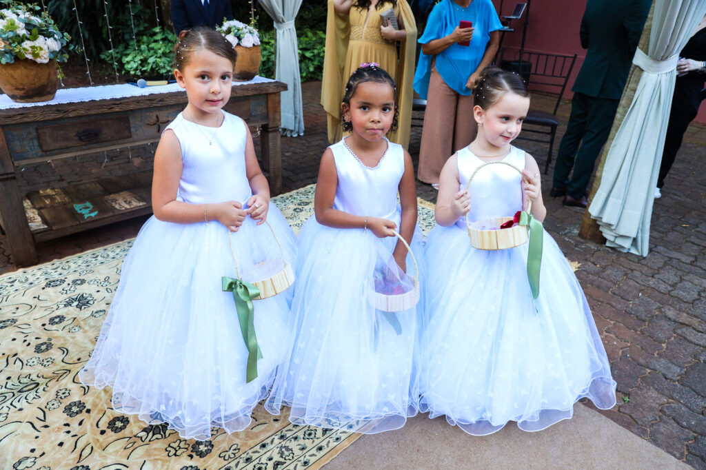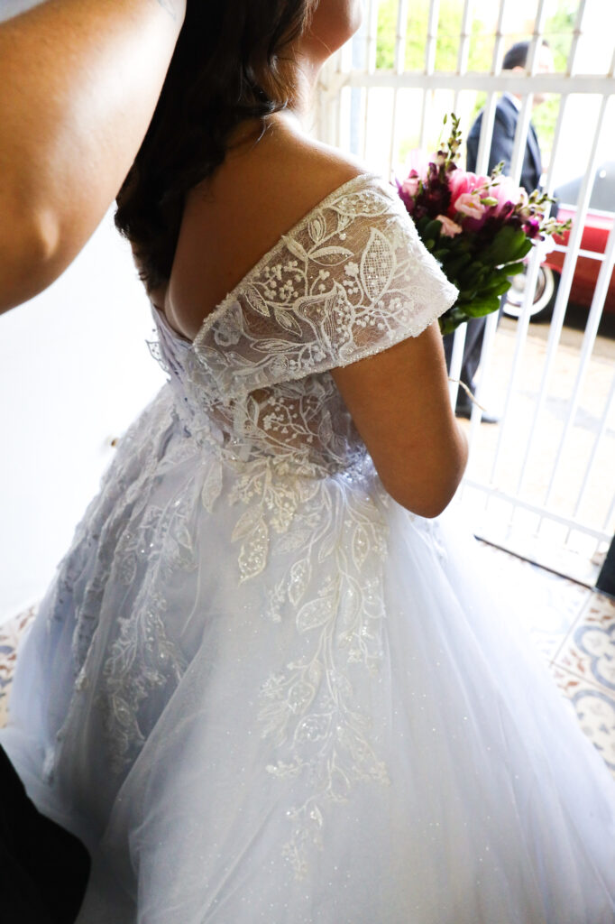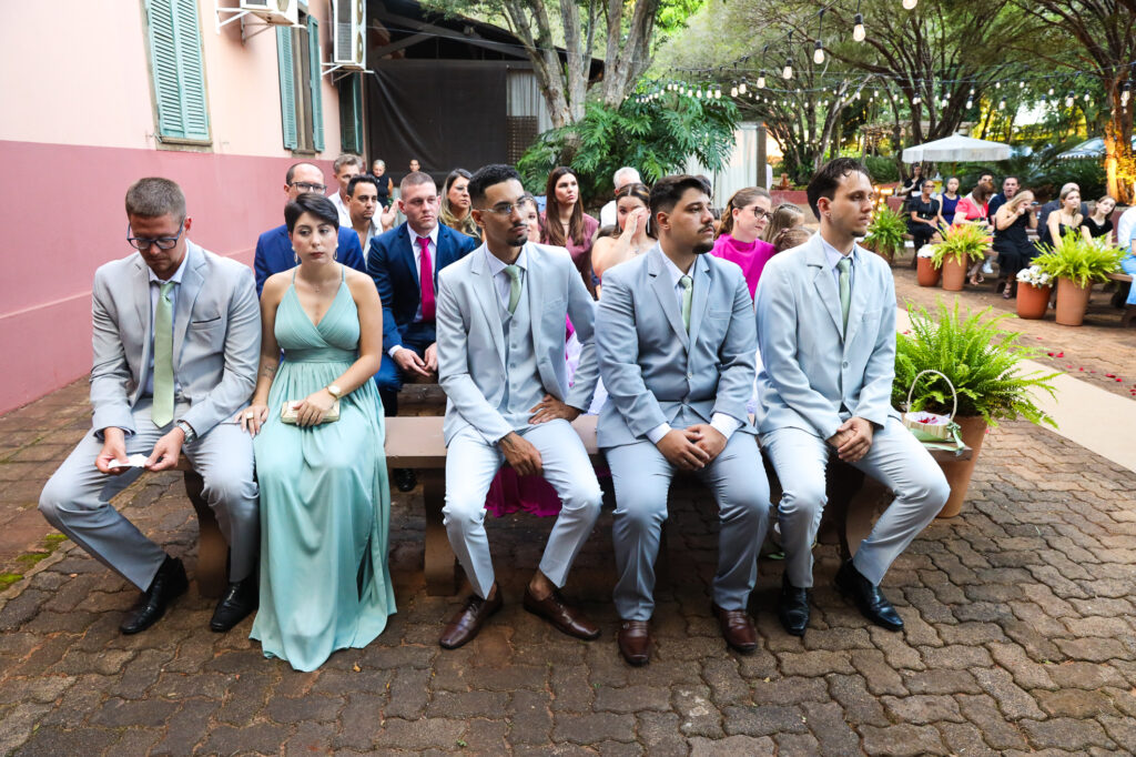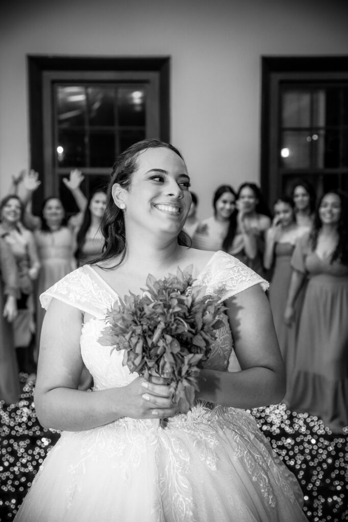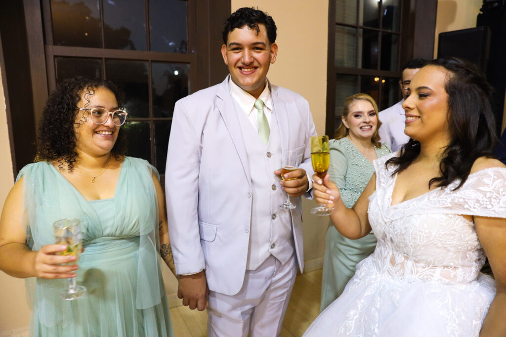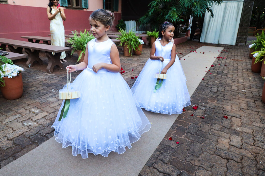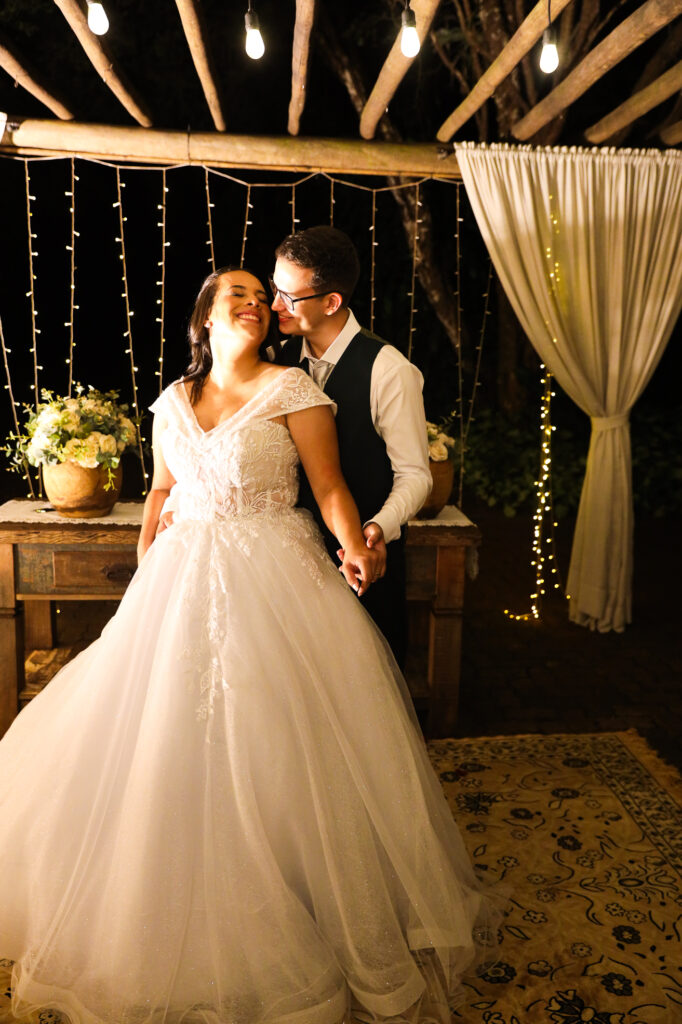 A Ana estava nervosa no começo, até chorou antes de entrar na cerimônia, mas assim que viu o Eduardo, tudo se encaixou e ela sorriu.