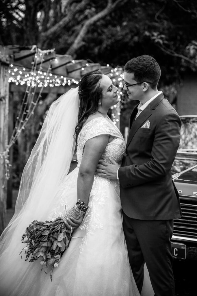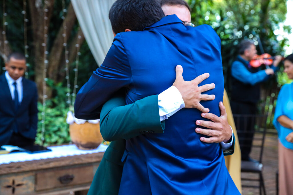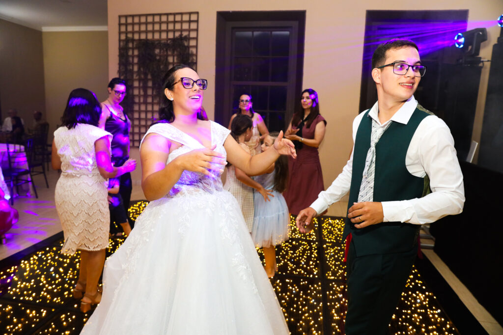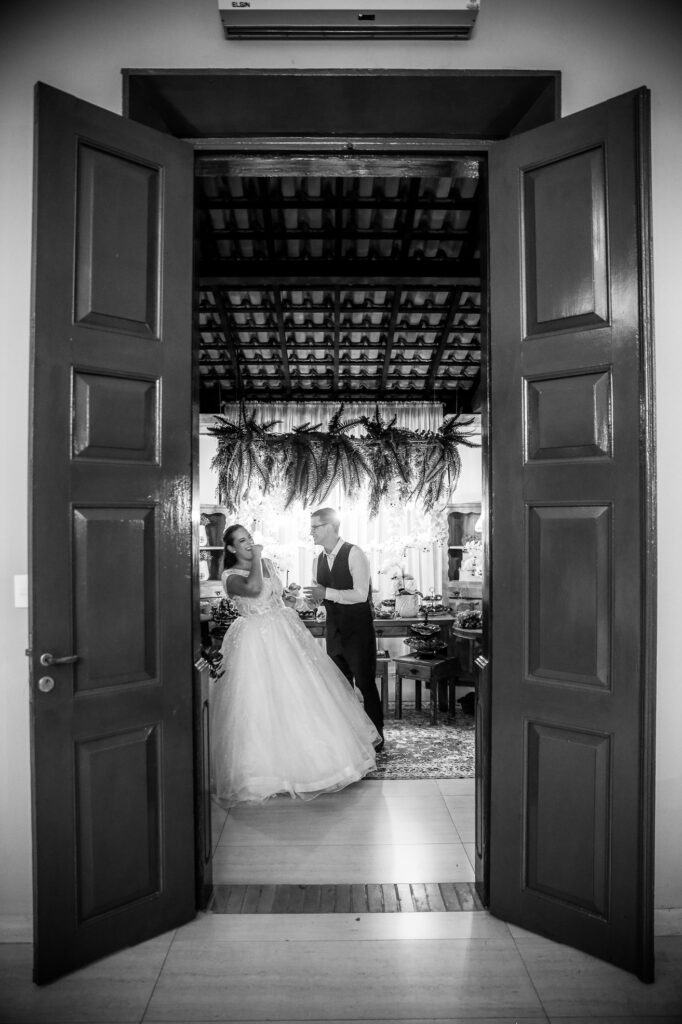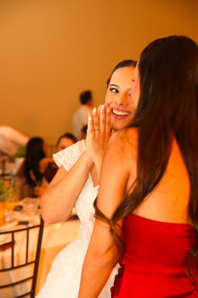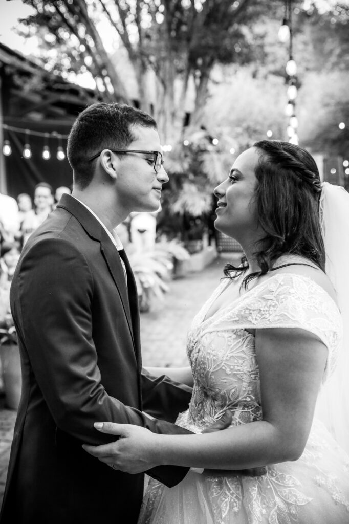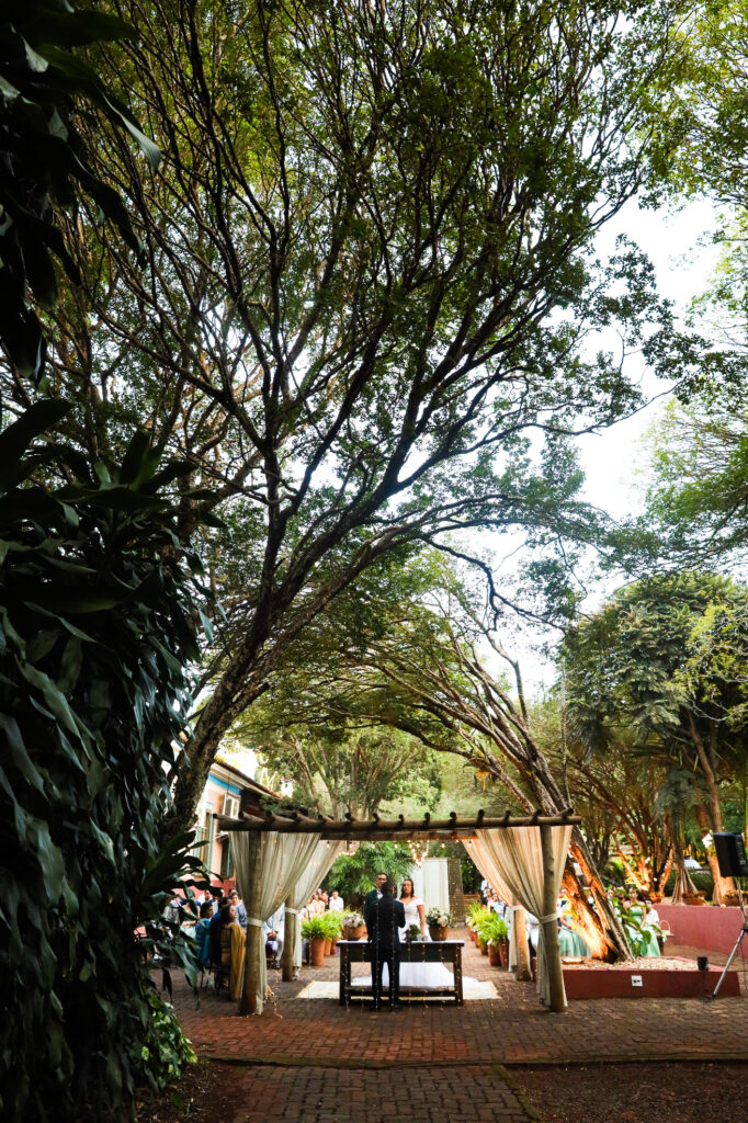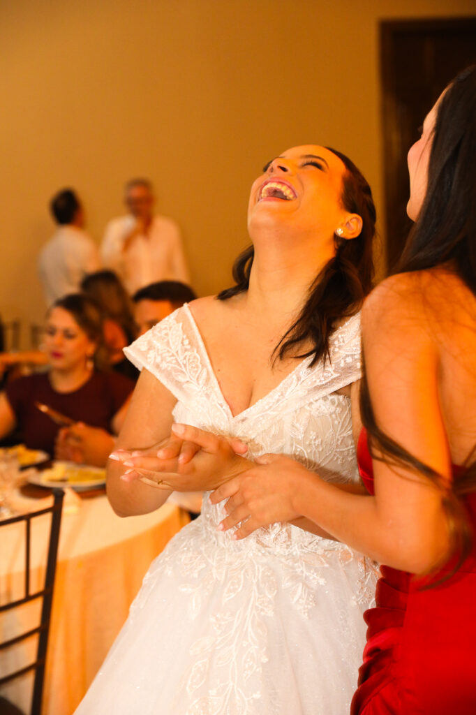 A Ana estava nervosa no começo, até chorou antes de entrar na cerimônia, mas assim que viu o Eduardo, tudo se encaixou e ela sorriu.