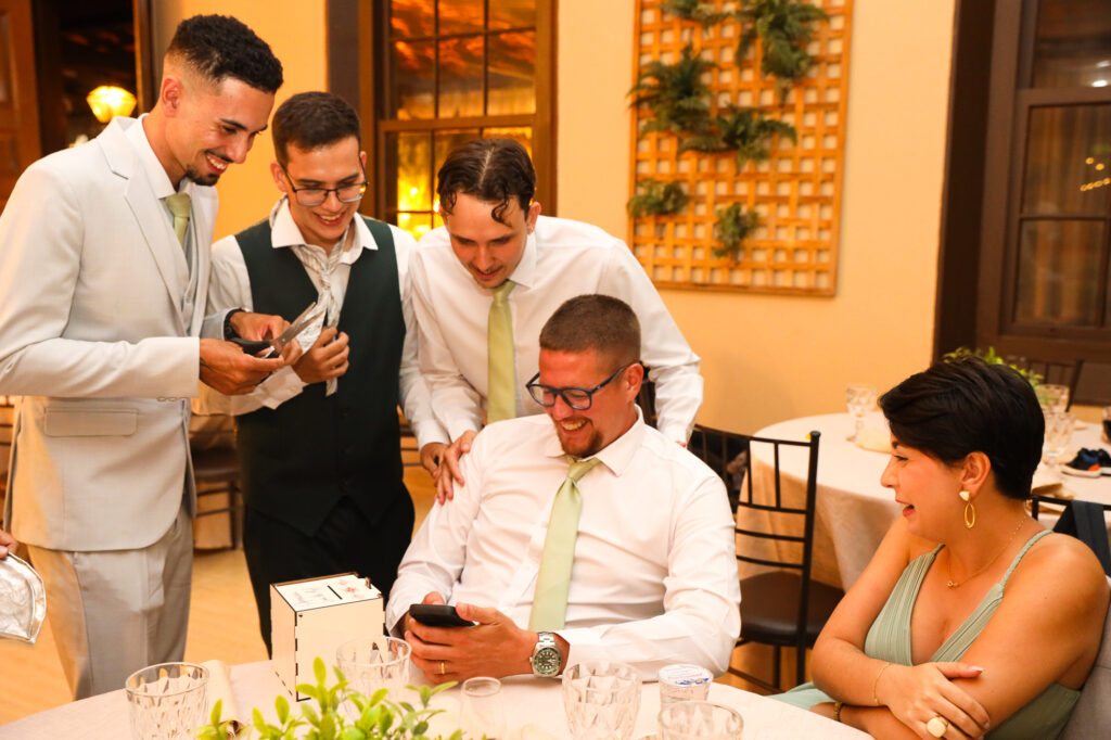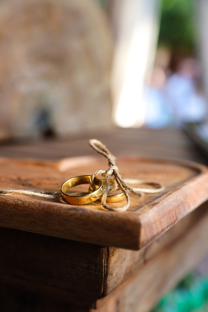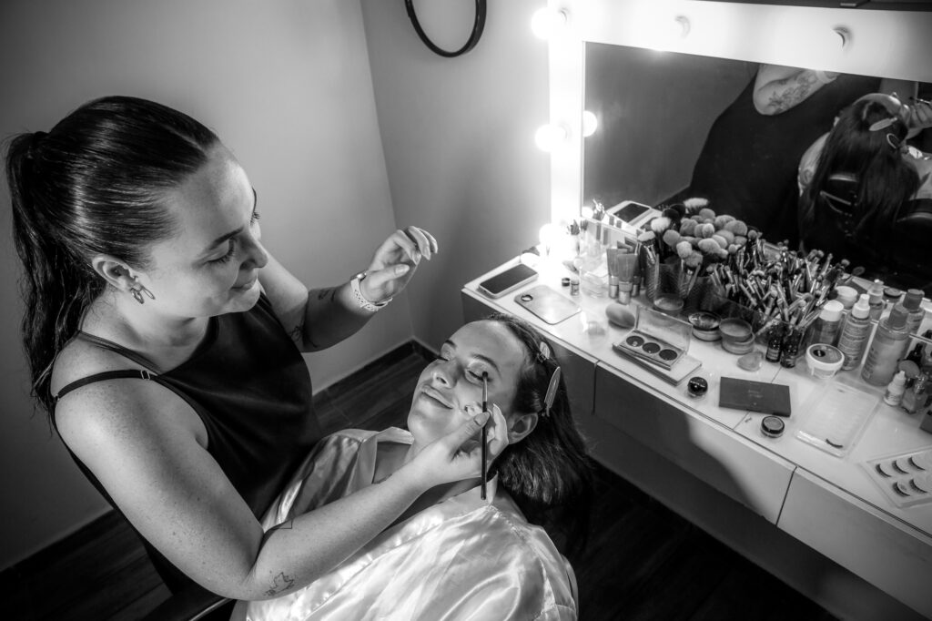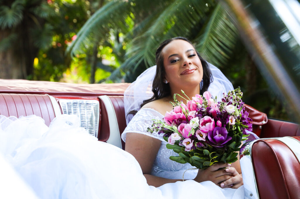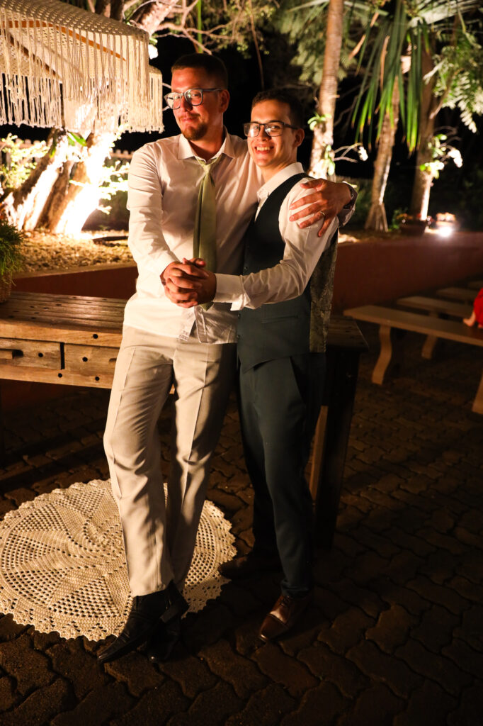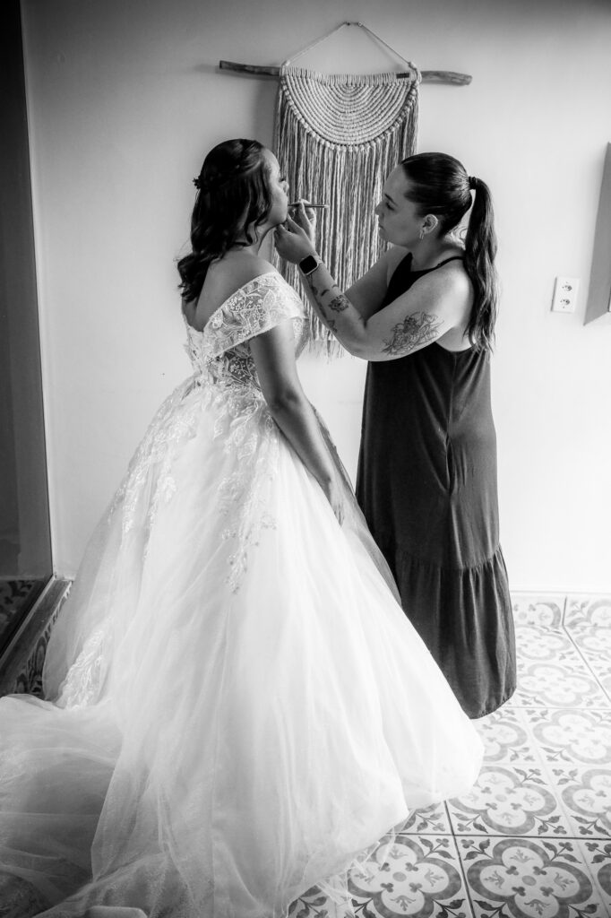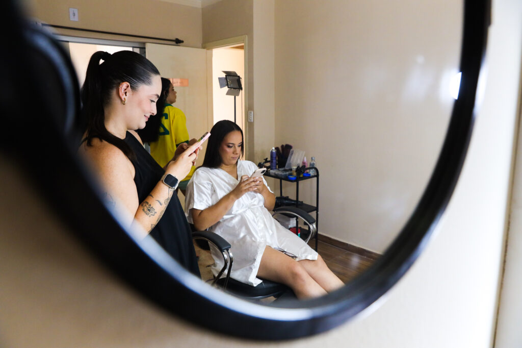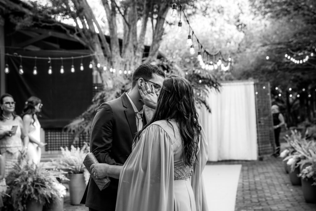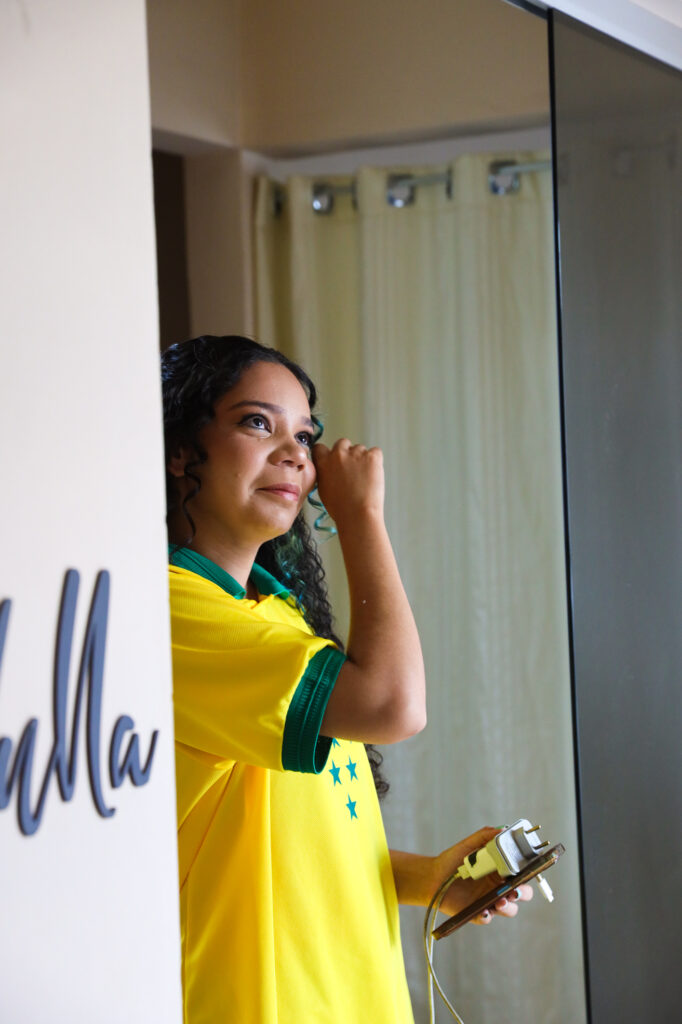 A Ana estava nervosa no começo, até chorou antes de entrar na cerimônia, mas assim que viu o Eduardo, tudo se encaixou e ela sorriu.