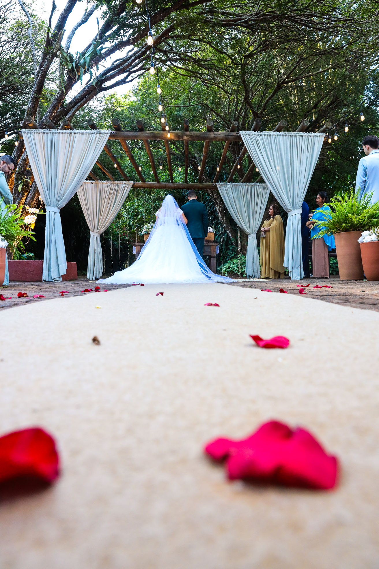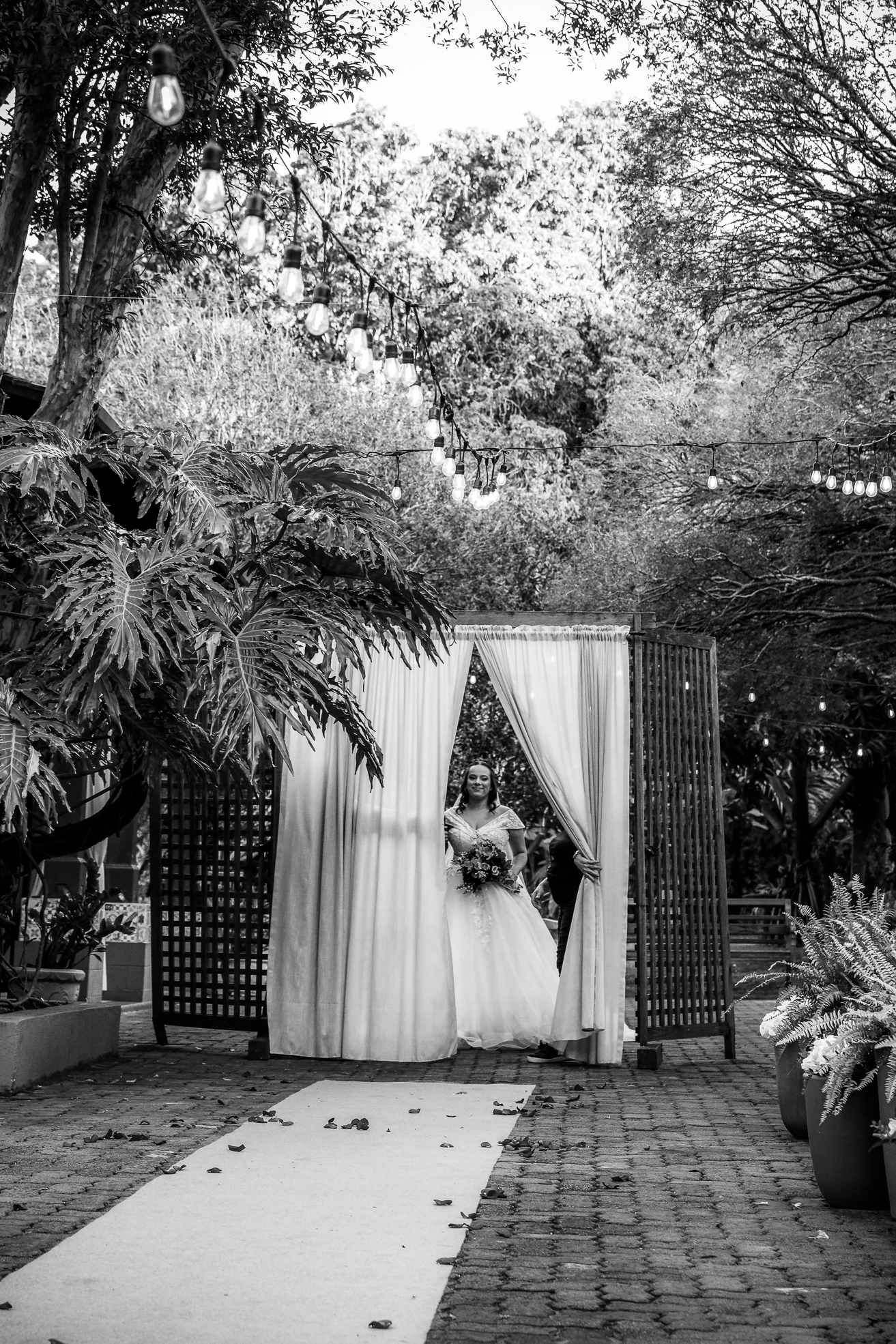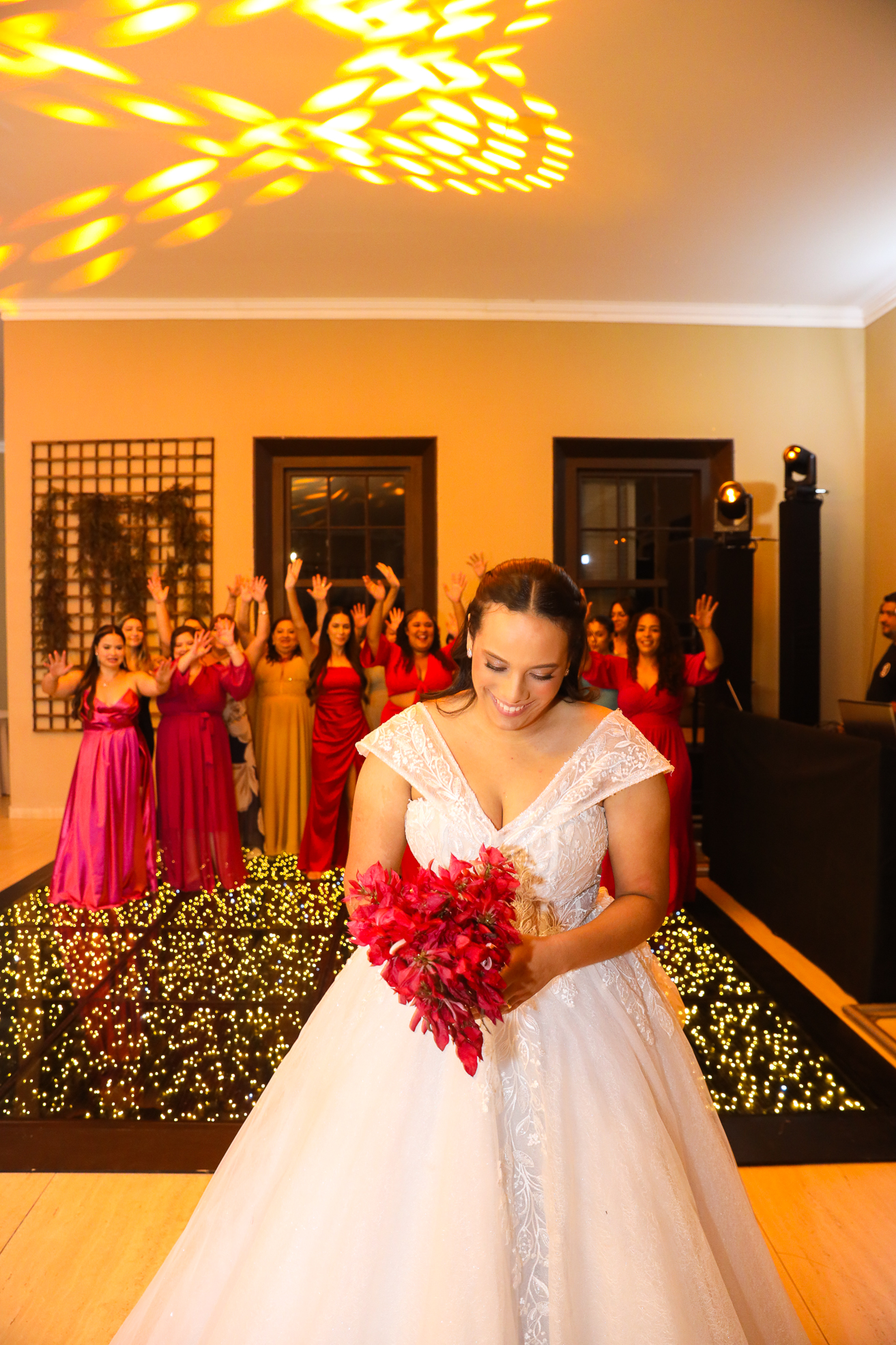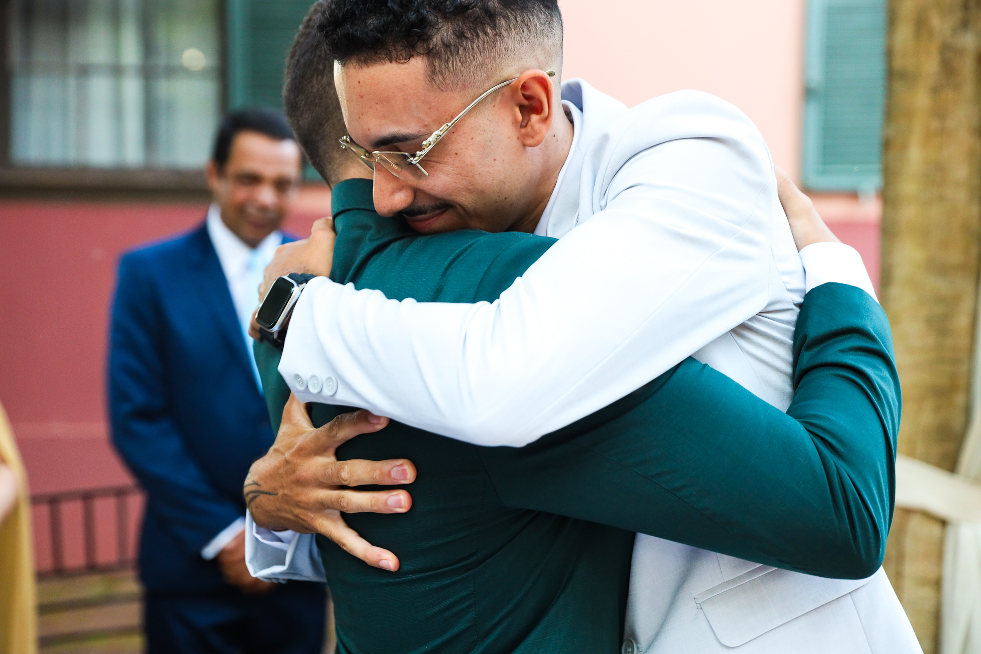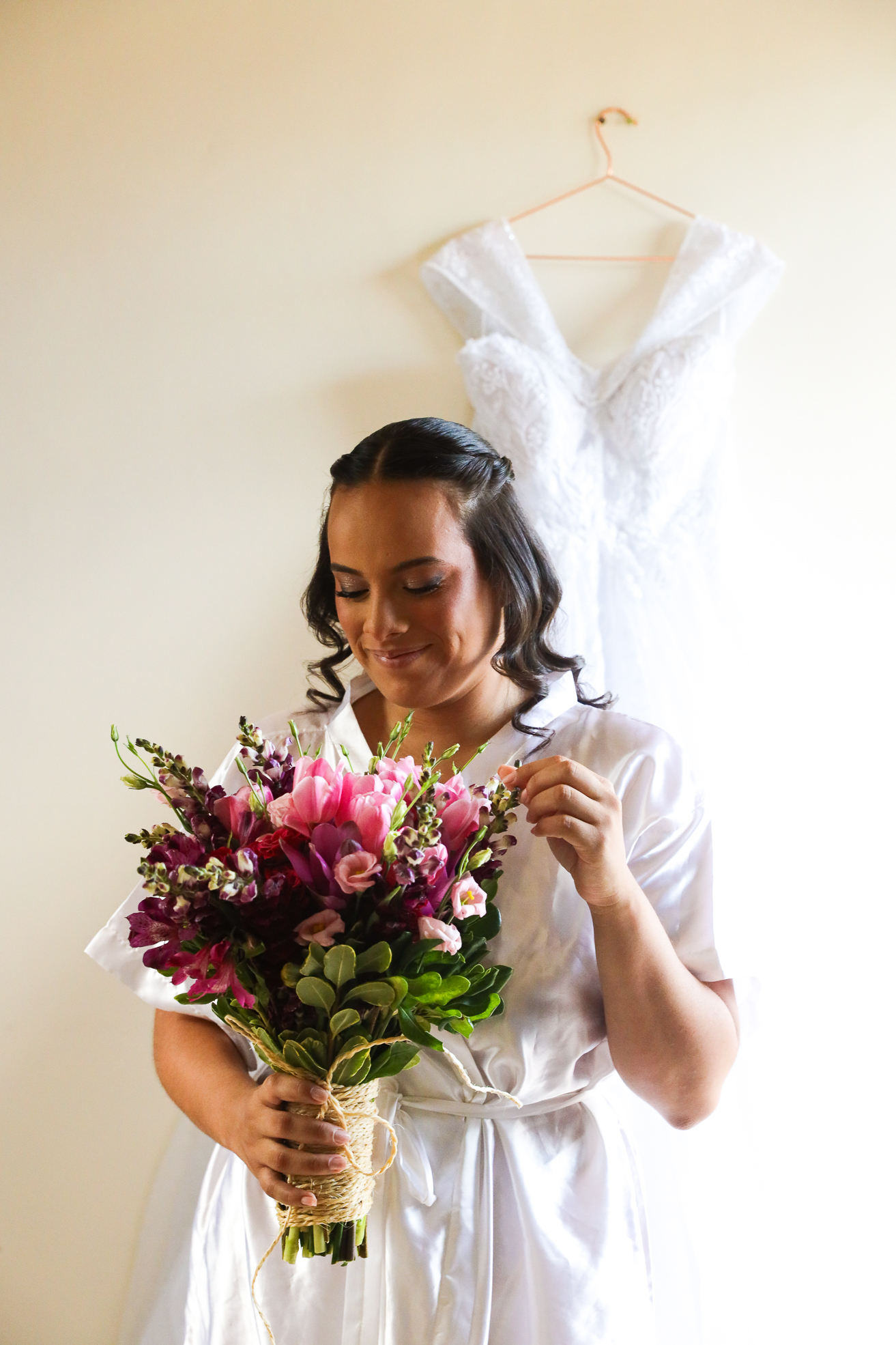 A Ana estava nervosa no começo, até chorou antes de entrar na cerimônia, mas assim que viu o Eduardo, tudo se encaixou e ela sorriu.