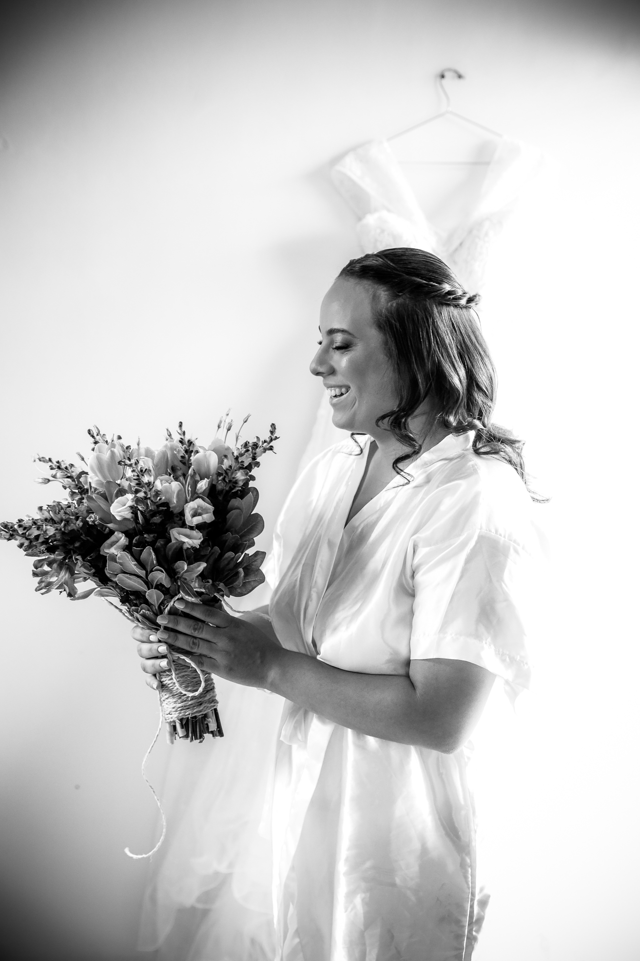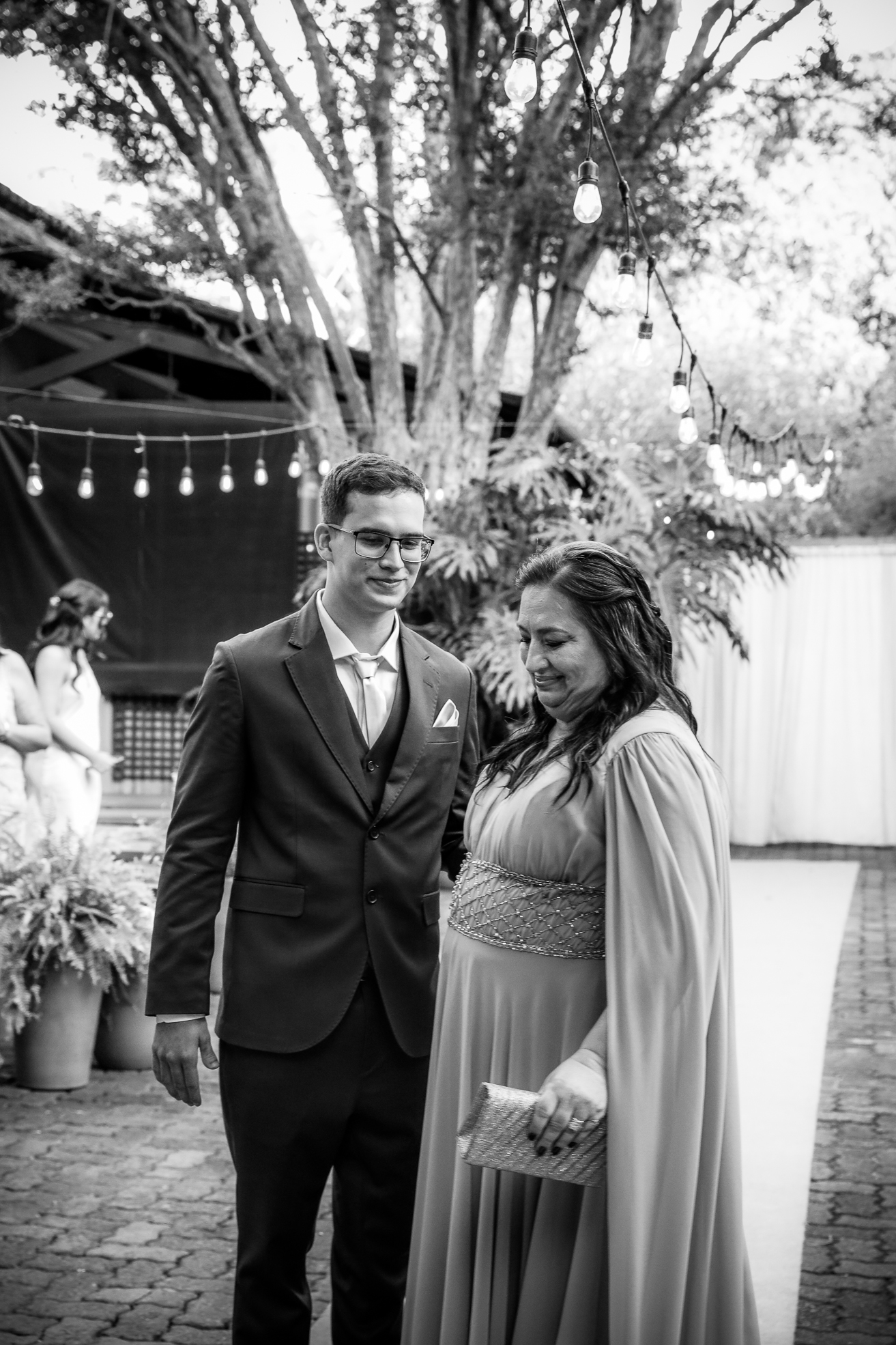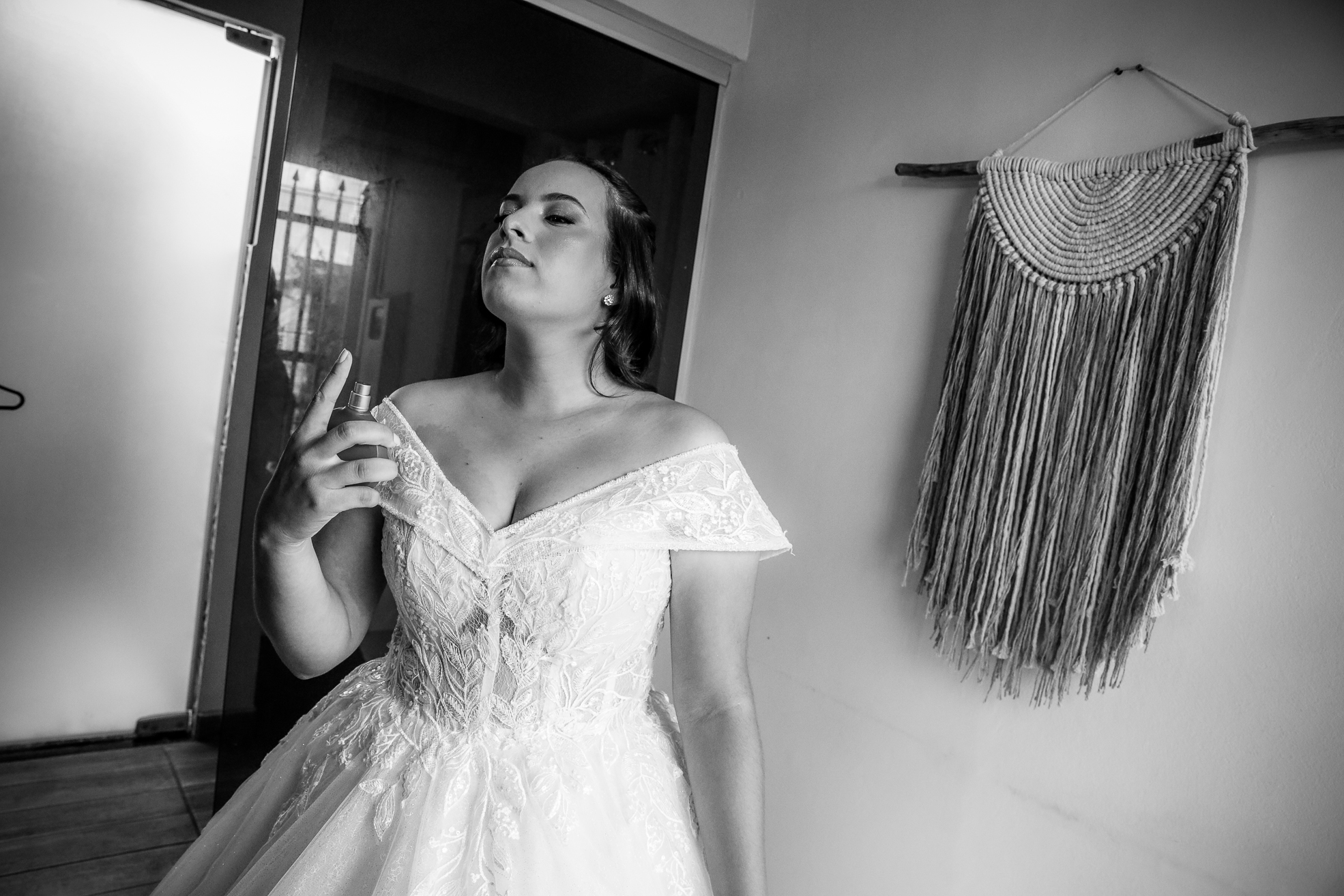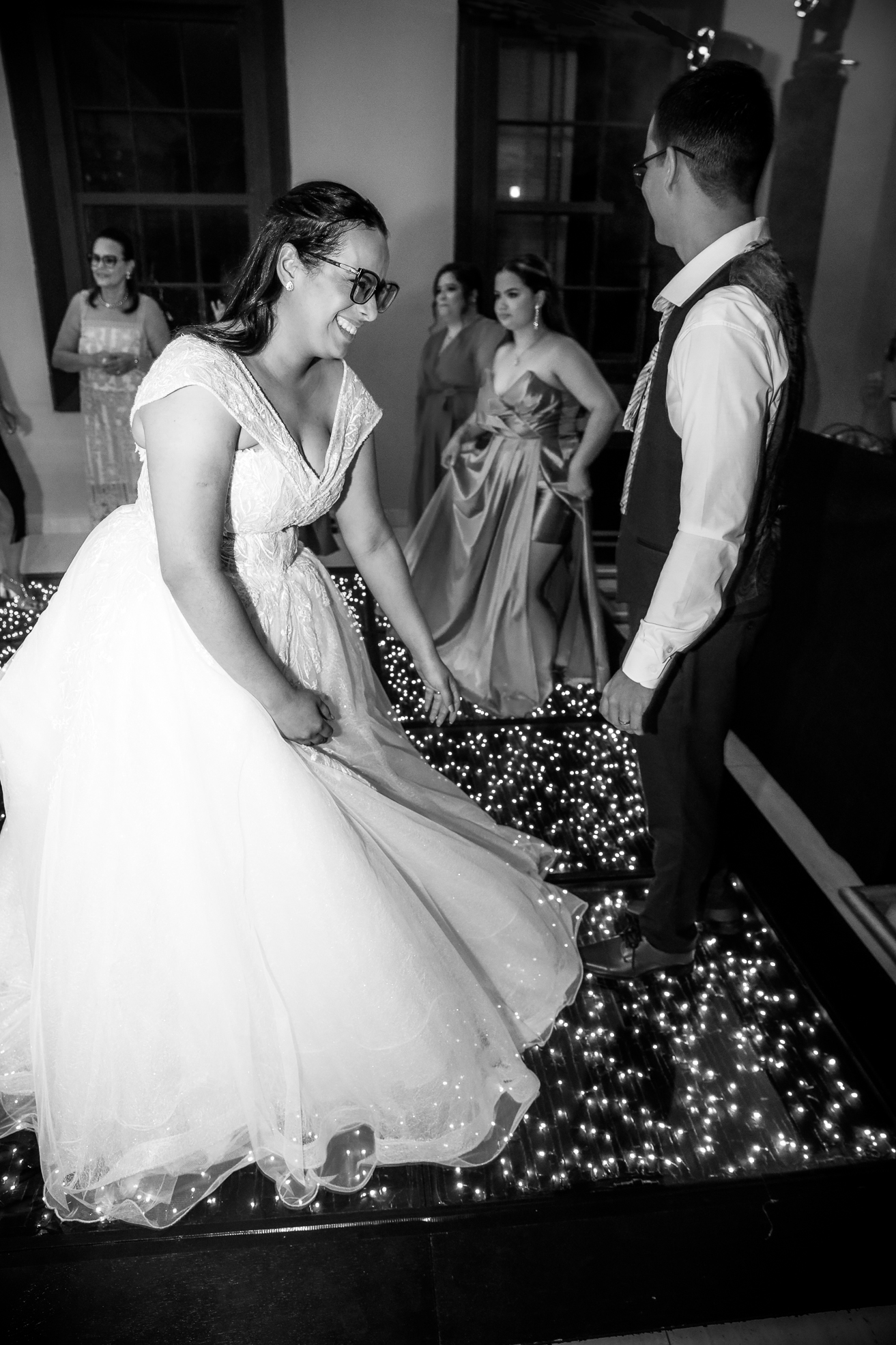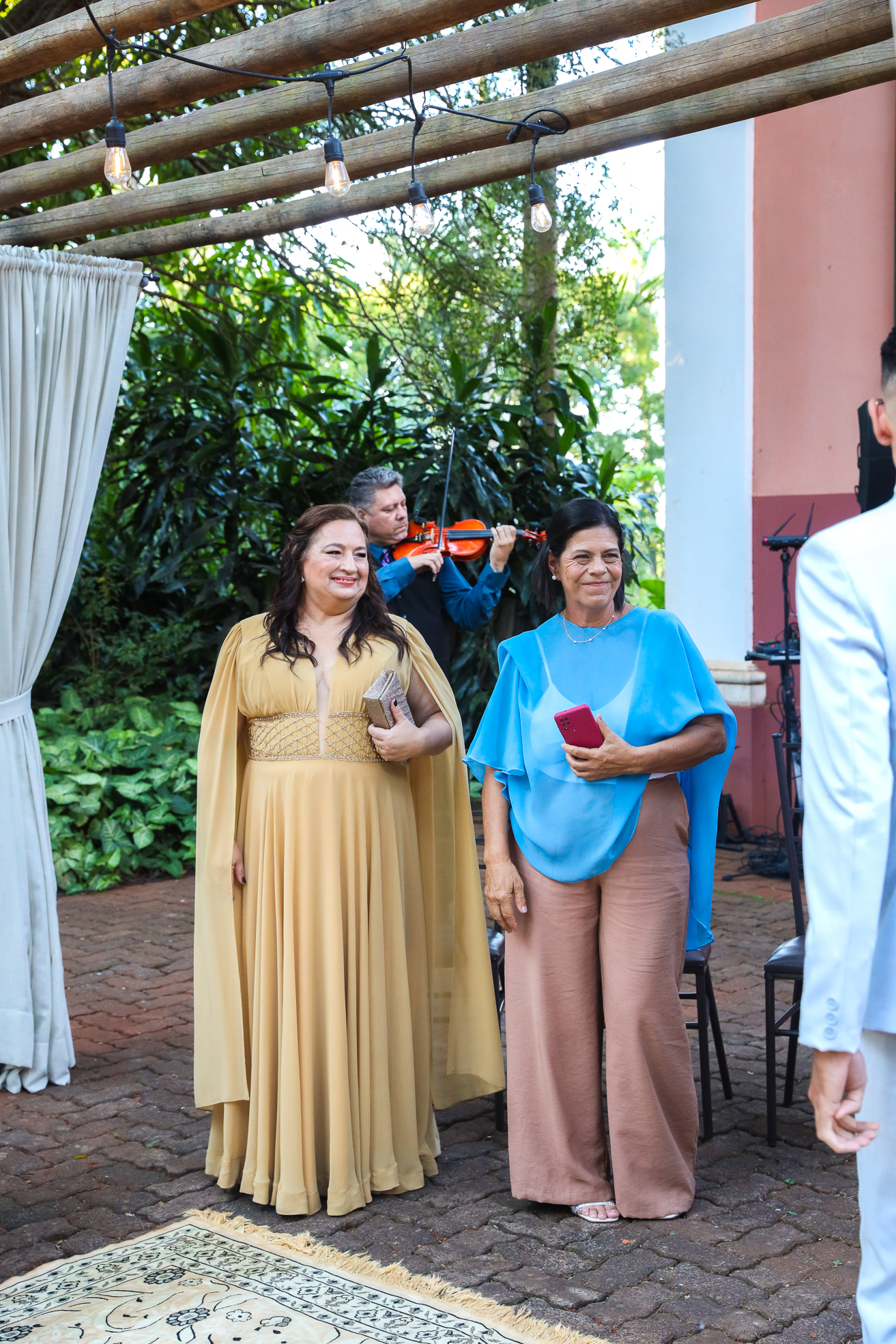 A Ana estava nervosa no começo, até chorou antes de entrar na cerimônia, mas assim que viu o Eduardo, tudo se encaixou e ela sorriu.