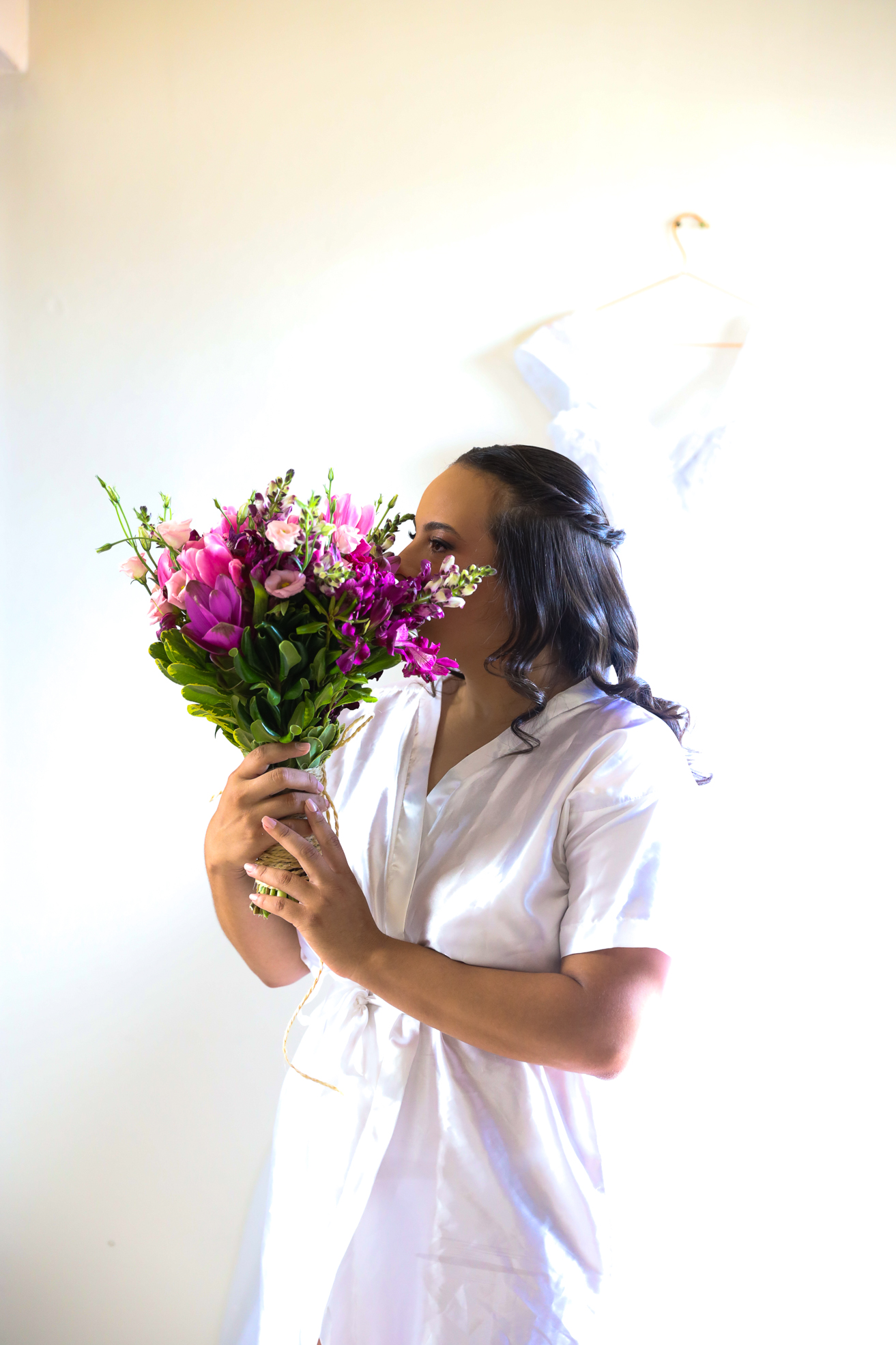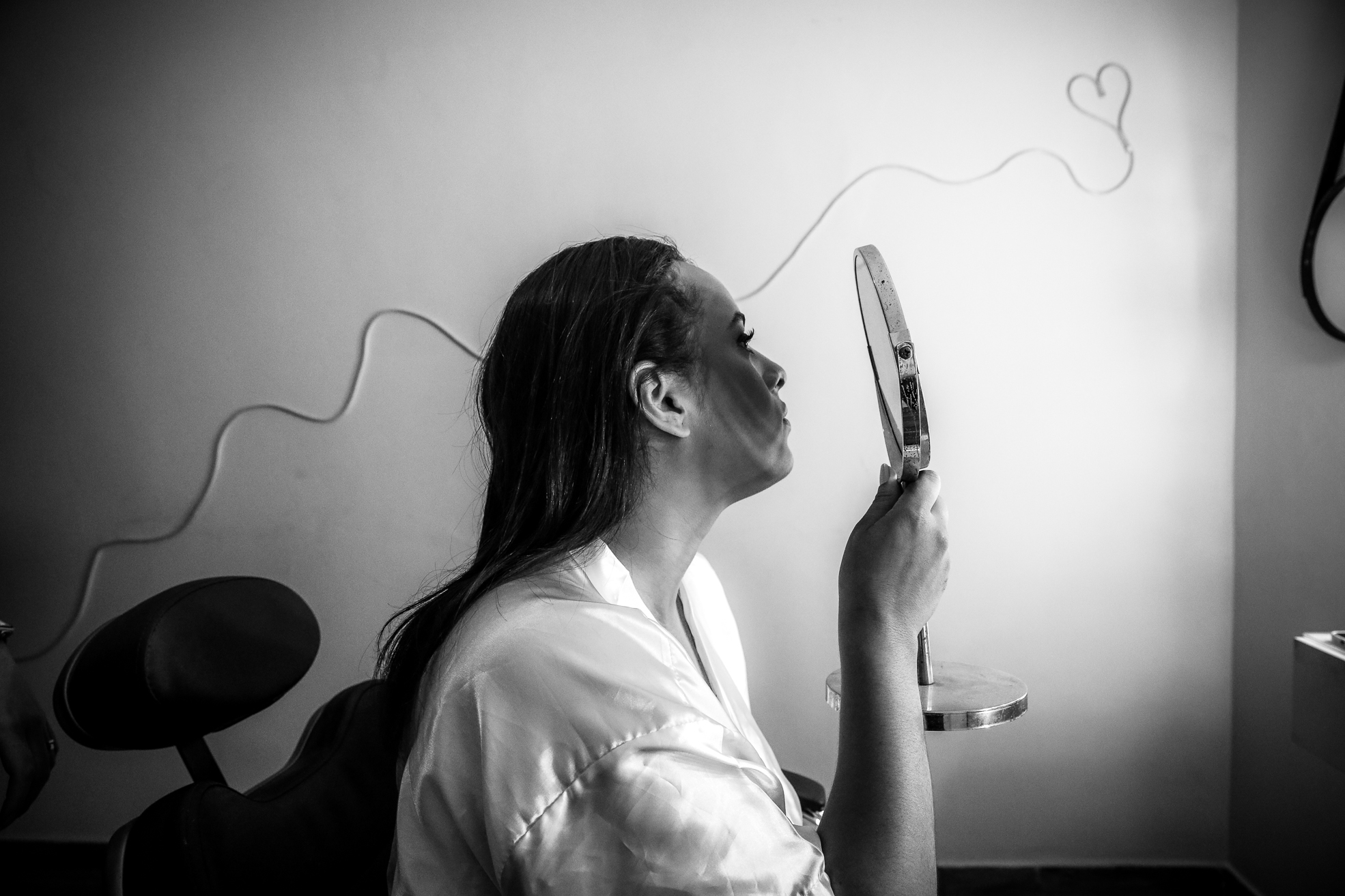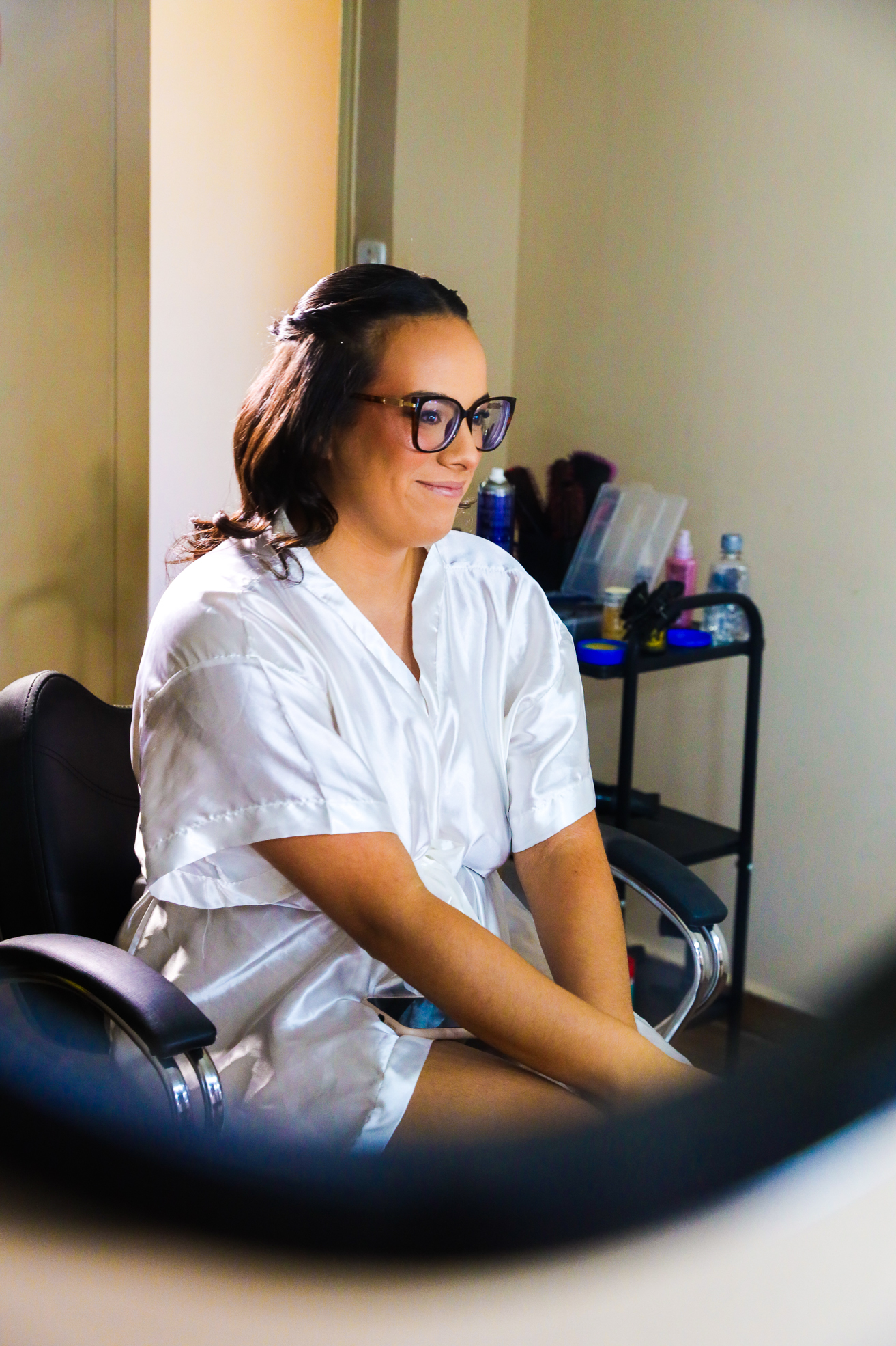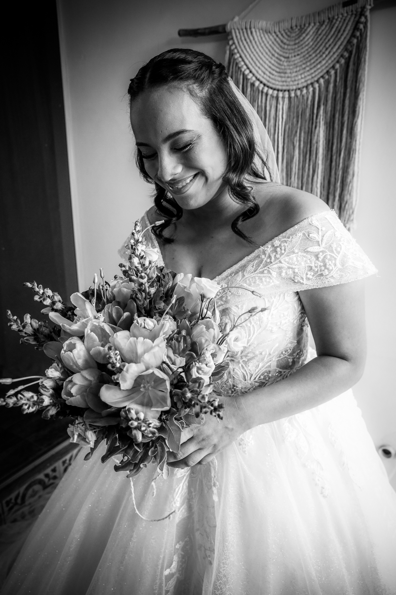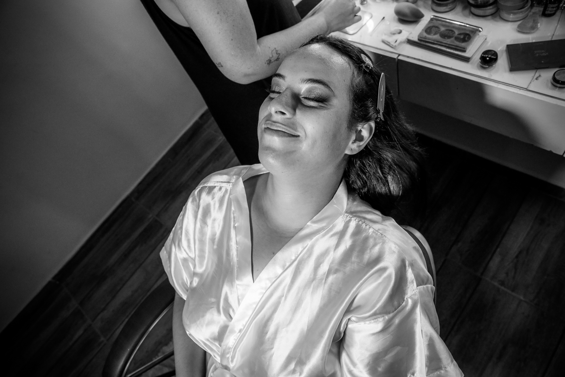 A Ana estava nervosa no começo, até chorou antes de entrar na cerimônia, mas assim que viu o Eduardo, tudo se encaixou e ela sorriu.